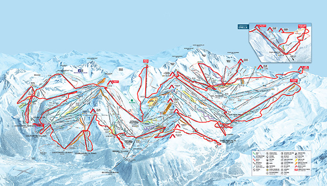 With loads of new lifts (and even new pistes) since 2006 it was time for a re-think and to keep it as a really tough test for good recreational skiers. Even with good planning, good navigation and a good pace there's always a chance of lift breakdowns, piste closures, bad weather or unexpected queues so don't expect to complete it at your first attempt. Always keep an eye out for any high winds warnings when heading out of your local valley - this is usually posted on information boards at the man lifts.