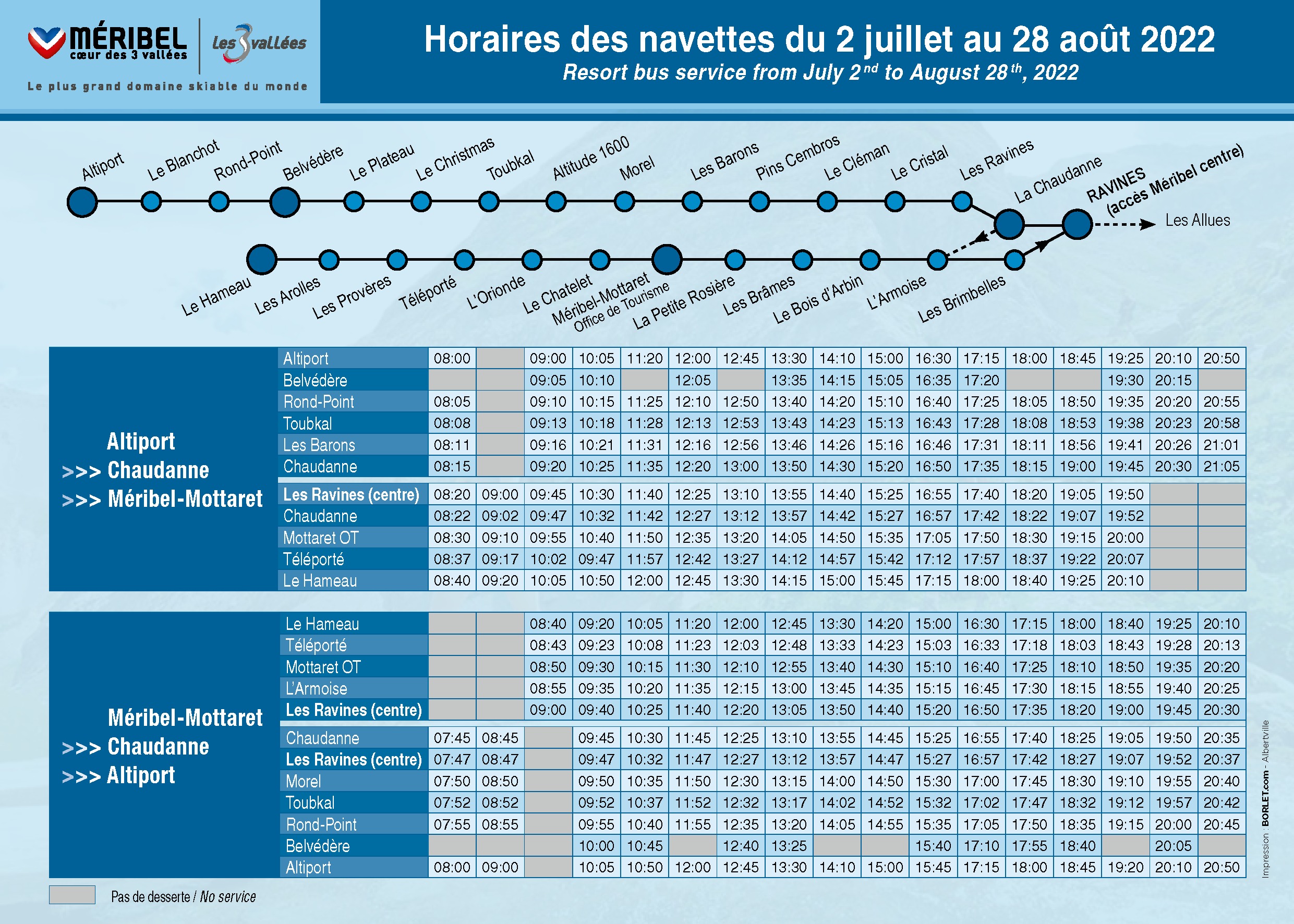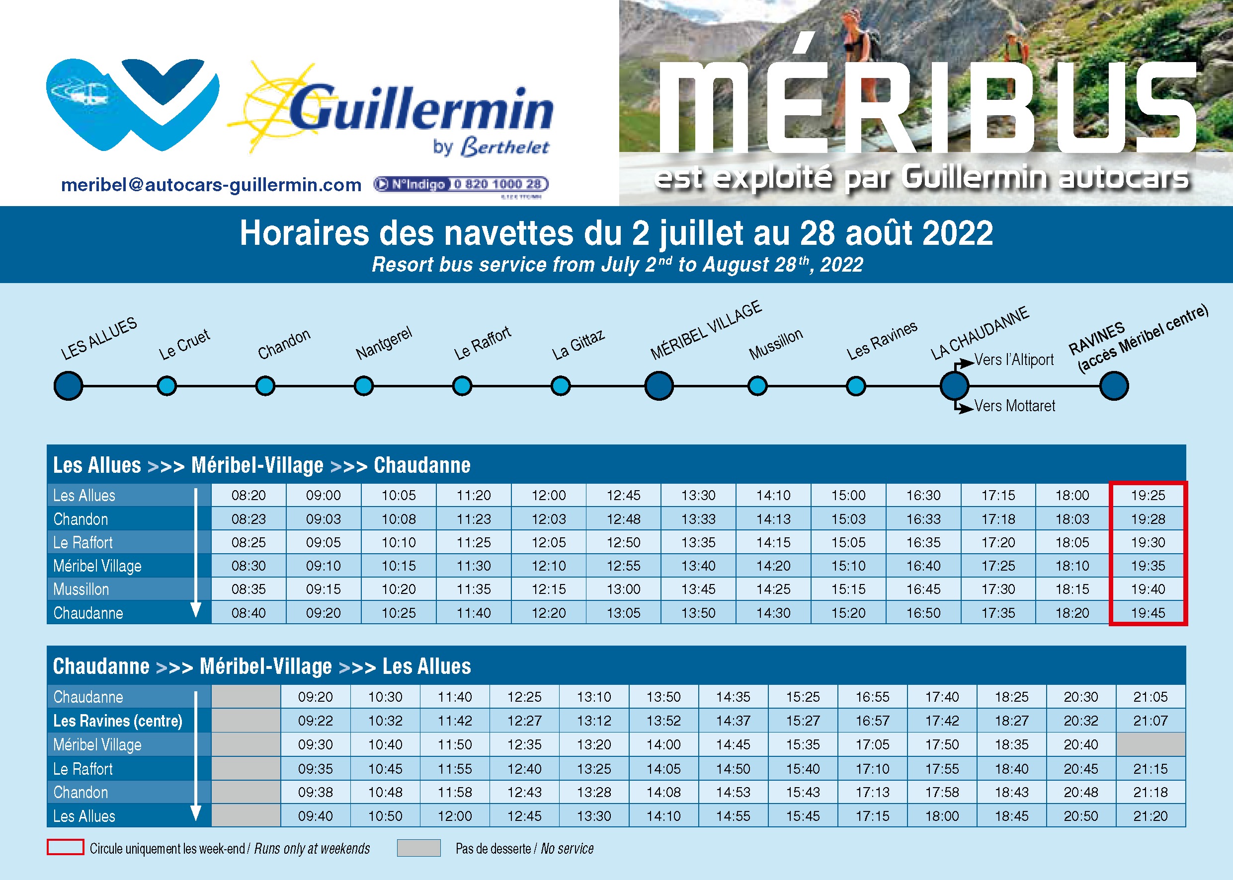 Méribel Méribus Timetable 1 – Les Allues / Méribel Village / Chaudanne from 02 Jul to 28 Aug