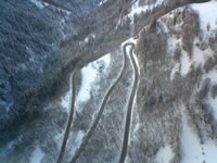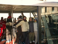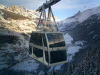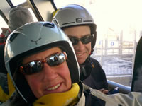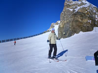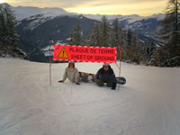 Snow not any better over in La Plagne and Les Arc with lots of stones about on the pistes but a good day out of resort anyway. The huge double decker, glass cable car linking the resorts is a great trip high up over the valley floor - not for the faint hearted. Took us a while to get the hang of the automated turnstiles at each lift, the lift pass uses a radio technology to automatically open the gate as you approach. Rumour has it the system is to be introduced to the Three Valleys for next Winter. Some unusual piste signs too "Sheet of Ground" for example - see pic below.