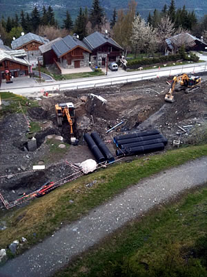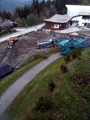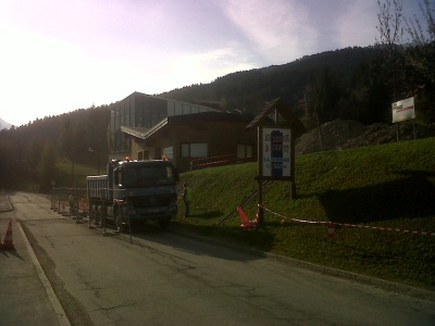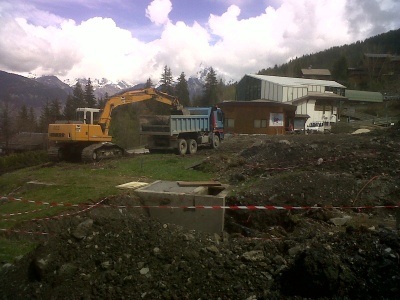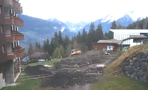 The new proposed "public" building with apartments above situated between Hotel Montana and the Gondola Station - The artists impression is from the main road making things look quite built up as you approach the resort from Le Praz. The creche, commune office plus a local police station, workers accommodation, emergency medical room with ambulance access plus a small left luggage place are planned / rumoured.