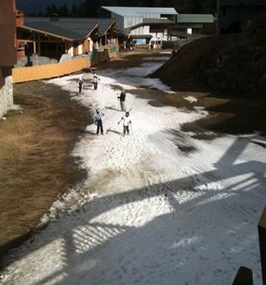 As can be seen from this weeks photos - fresh tracks and great snow high up is still available but low down the rain has taken it's toll with the track to the gondola just about broken up, probably a couple of weeks earlier than usual this season (building car parks underneath probably doesn't help!). Hopefully the Pisteurs will be able to keep Troika & Folyeres open through April. Thanks to Cath at Avid Eaters and Joey at Nick Ski for the pics.