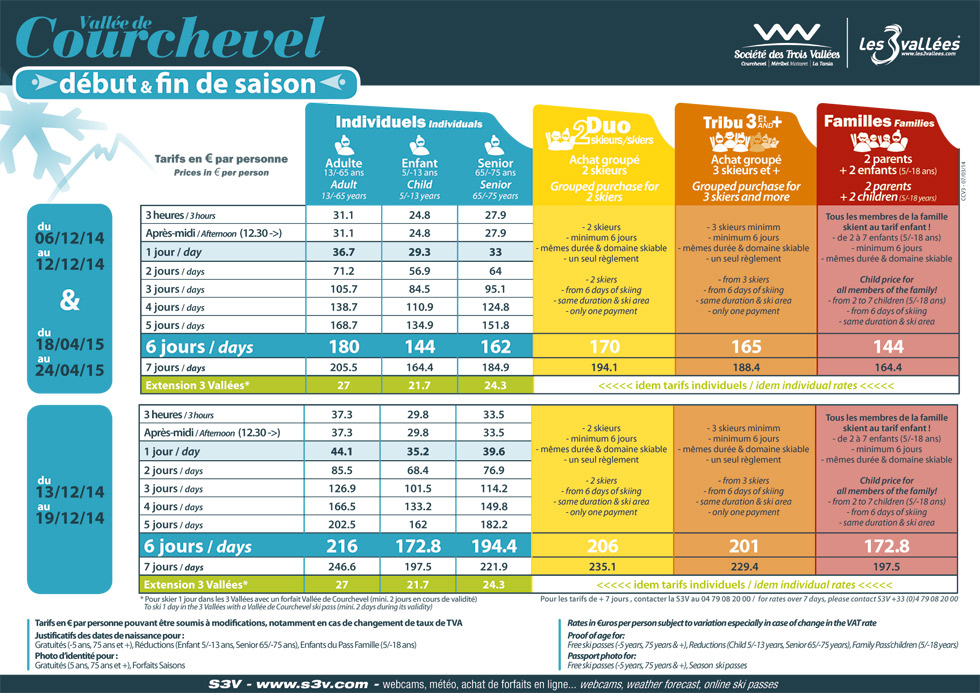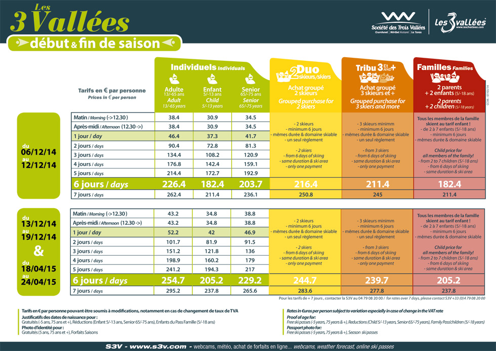 Three Valleys Pass 2014/2015 - Main Season 20 Dec 2014 to 17 April 2015 |
