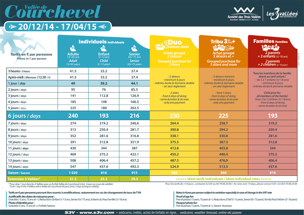 Winter 2015 Main Season Prices - Courchevel Valley (inc La Tania) | Three Valleys Pass